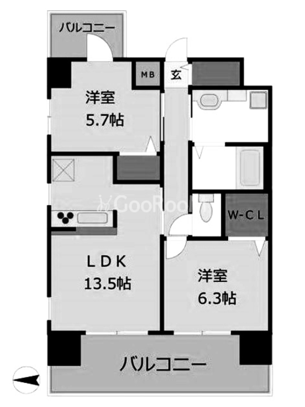 | 向き | 南 | 建物構造 | RC(鉄筋コンクリート) |